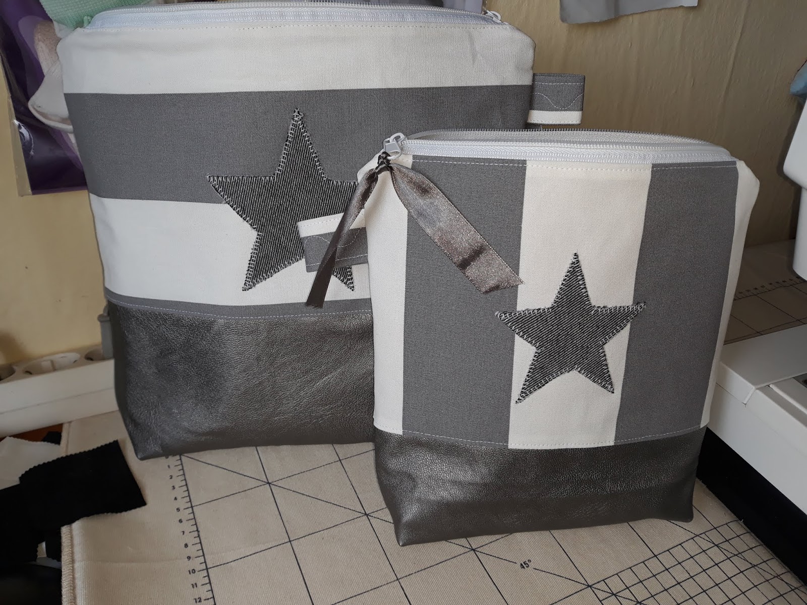 | Das Futter ist ein weicheres Wachstuch. Damit man auch etwas in der Badetasche findet, habe ich Fächer eingenäht, so dass die Flaschen hingestellt werden können. Schnittmuster ist mein eigenes. |